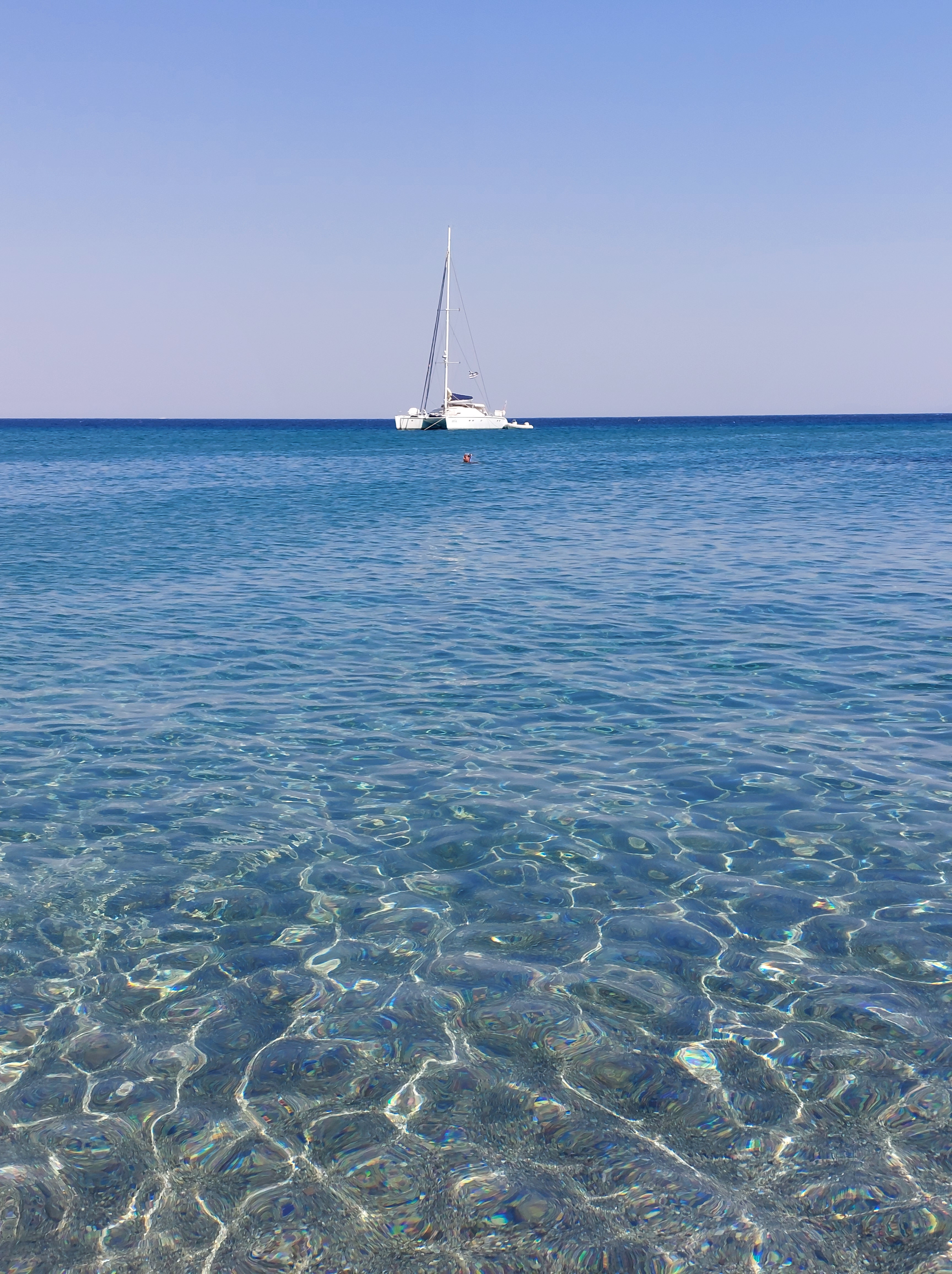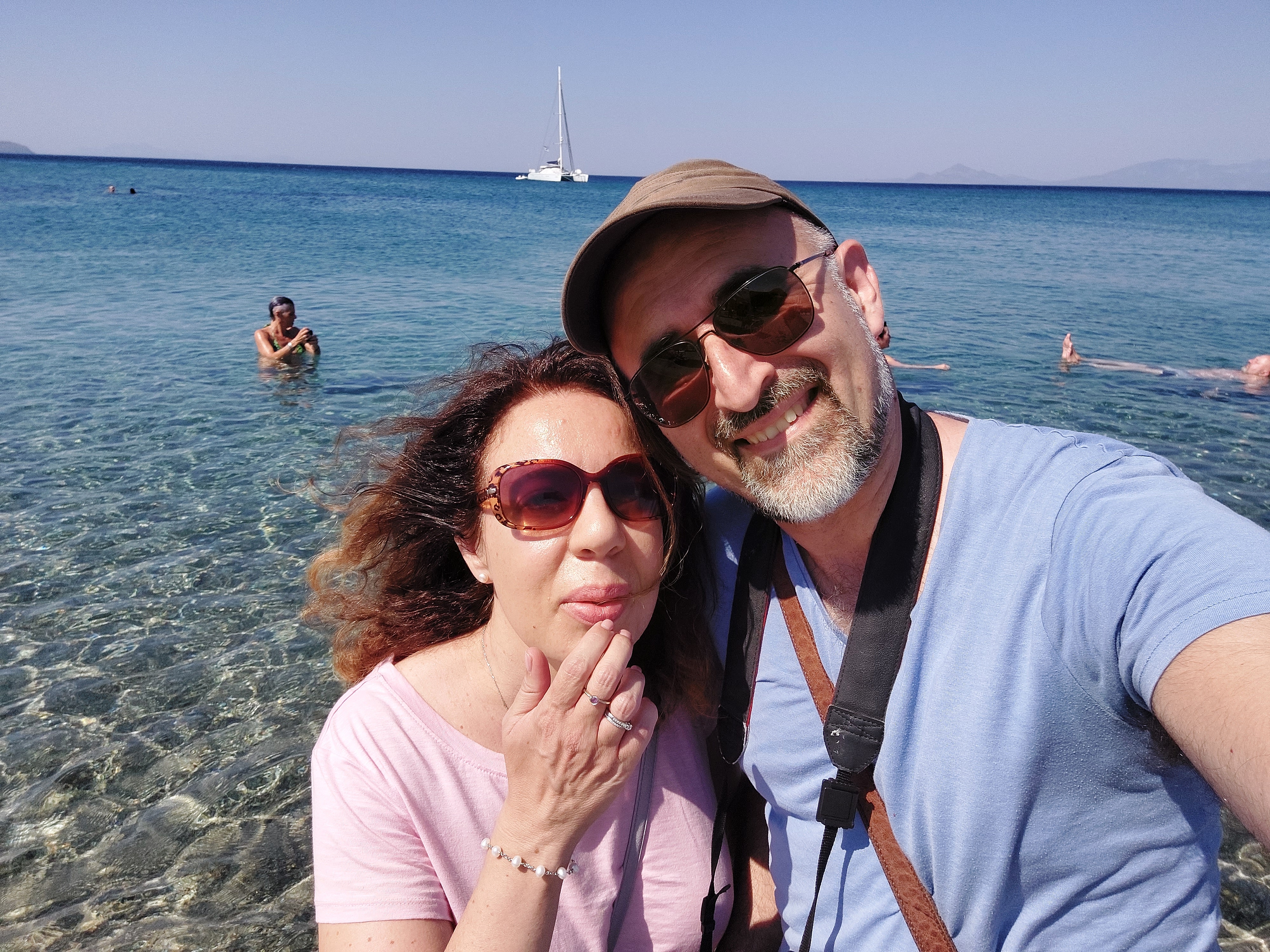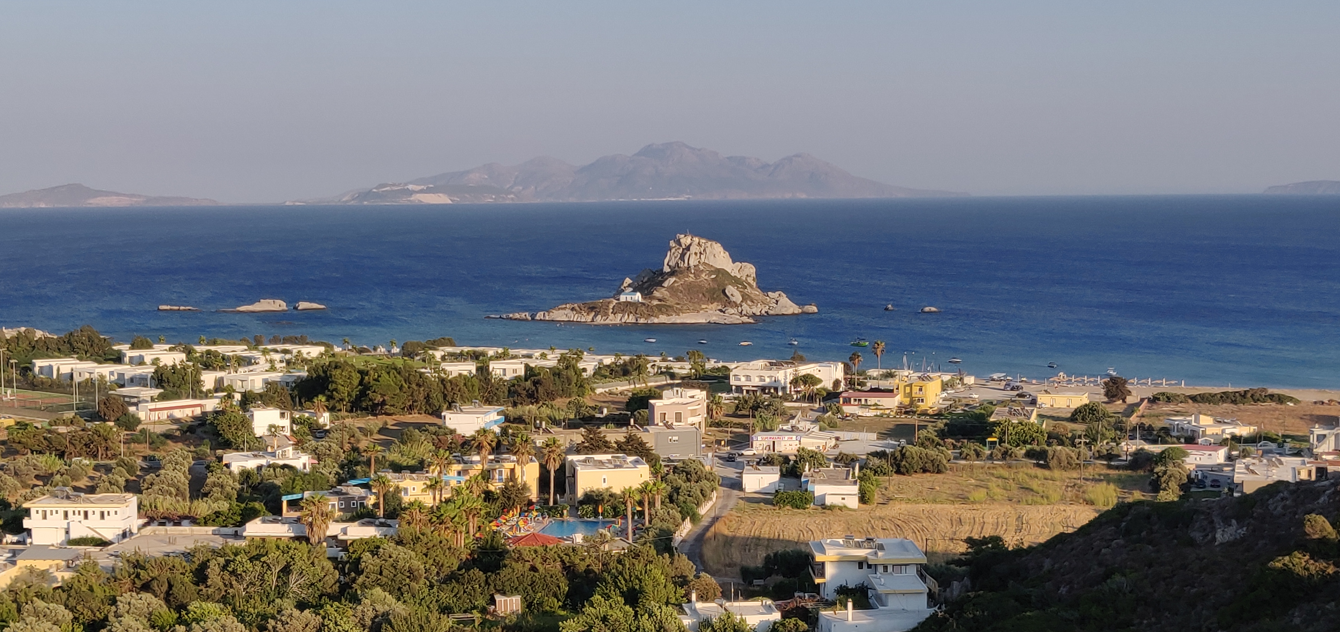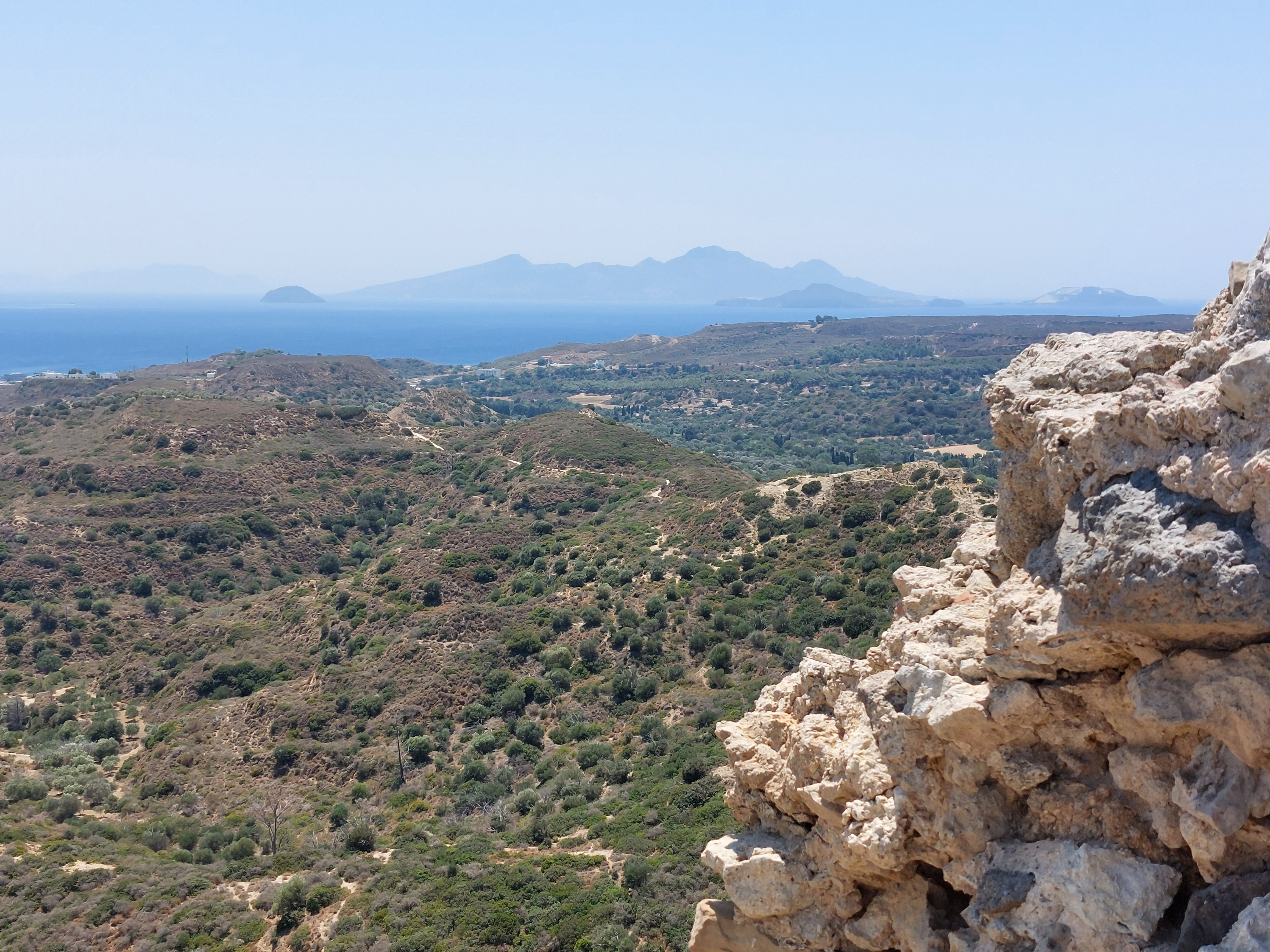 Nous les retrouvons dans l’ancienne forteresse d’Antimachia. Depuis les ruines des remparts, on aperçoit la mer